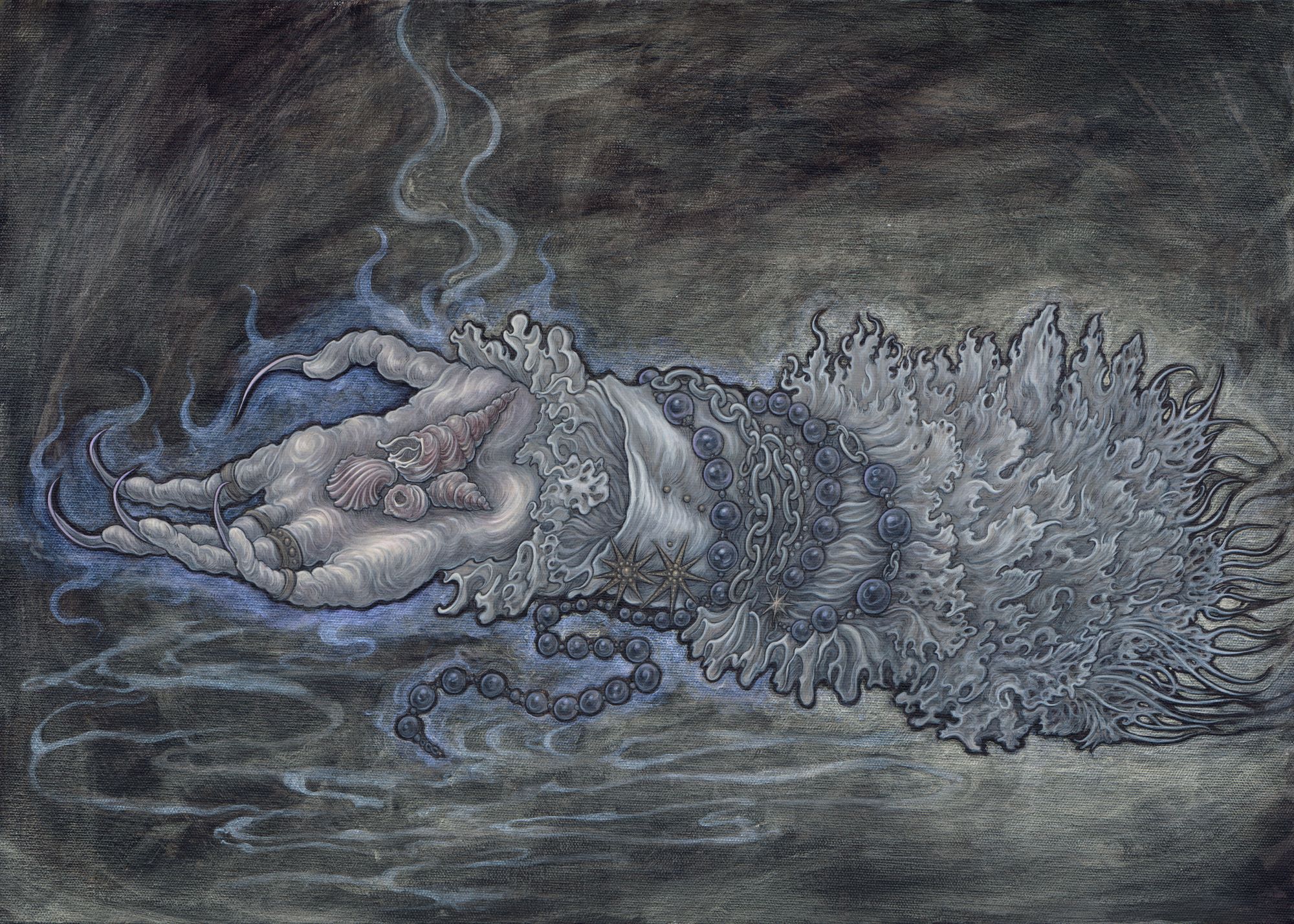 以硬筆繪畫、銅版蝕刻版畫結合西方解剖醫學與東方歷史神話等視覺意象,創造個人獨樹一格的創作語彙。陳思穎從過往經典中萃取出現代語彙,重新編寫符號,在反映當代現狀的當下,亦破除既定印象的隔閡,診斷著也窺探著所探尋的真象。